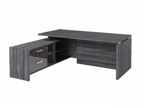 Щит на лицевой части стола - лакированная плита МДФ (ЛМДФ), с высокоглянцевой поверхностью. Толщина - 18 мм. Цвет - "Камень Пьетра Гриджиа черный". Кромка - 1 мм.